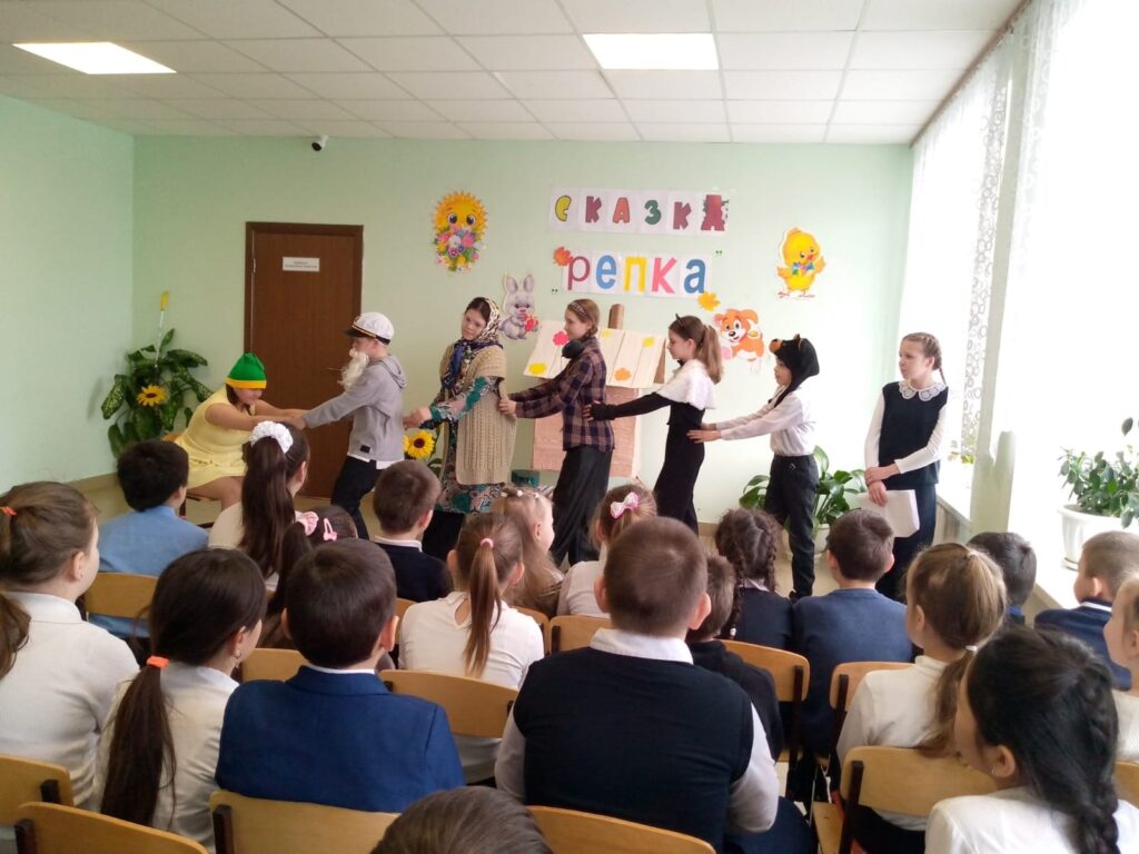 В школе прошла премьера спектакля «Репка» в исполнении театра «Школьные Ступеньки»