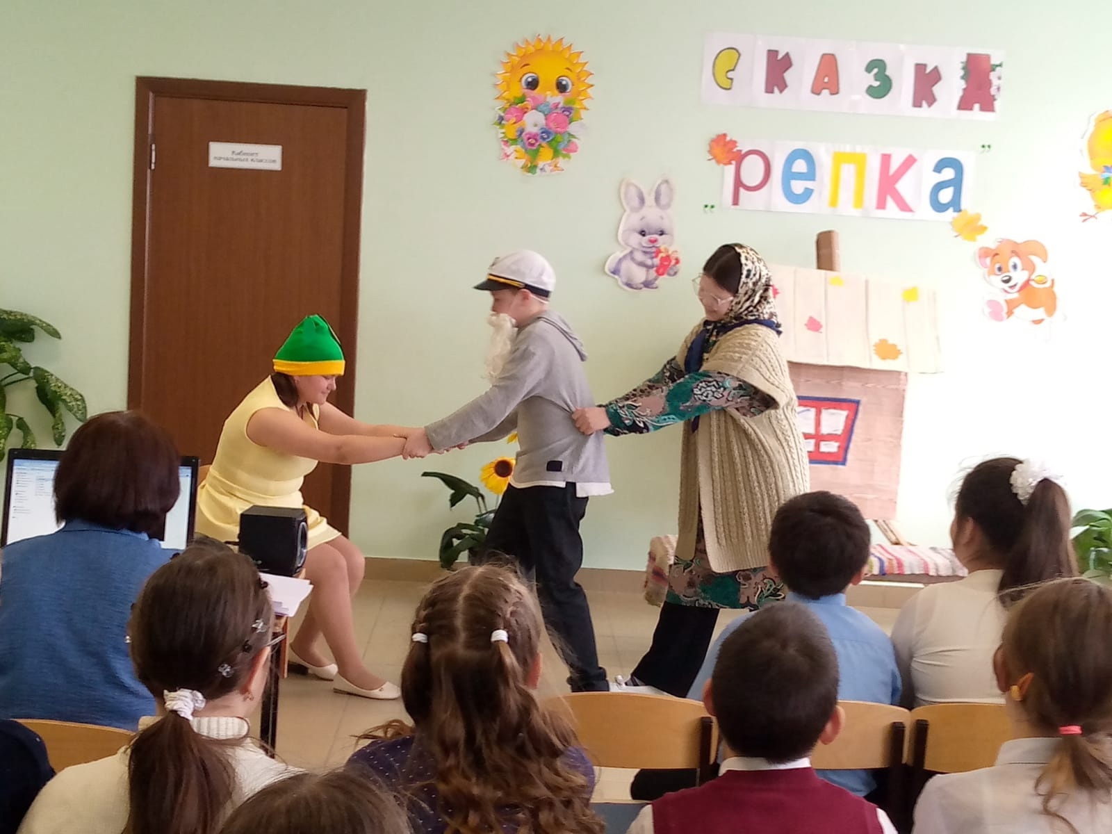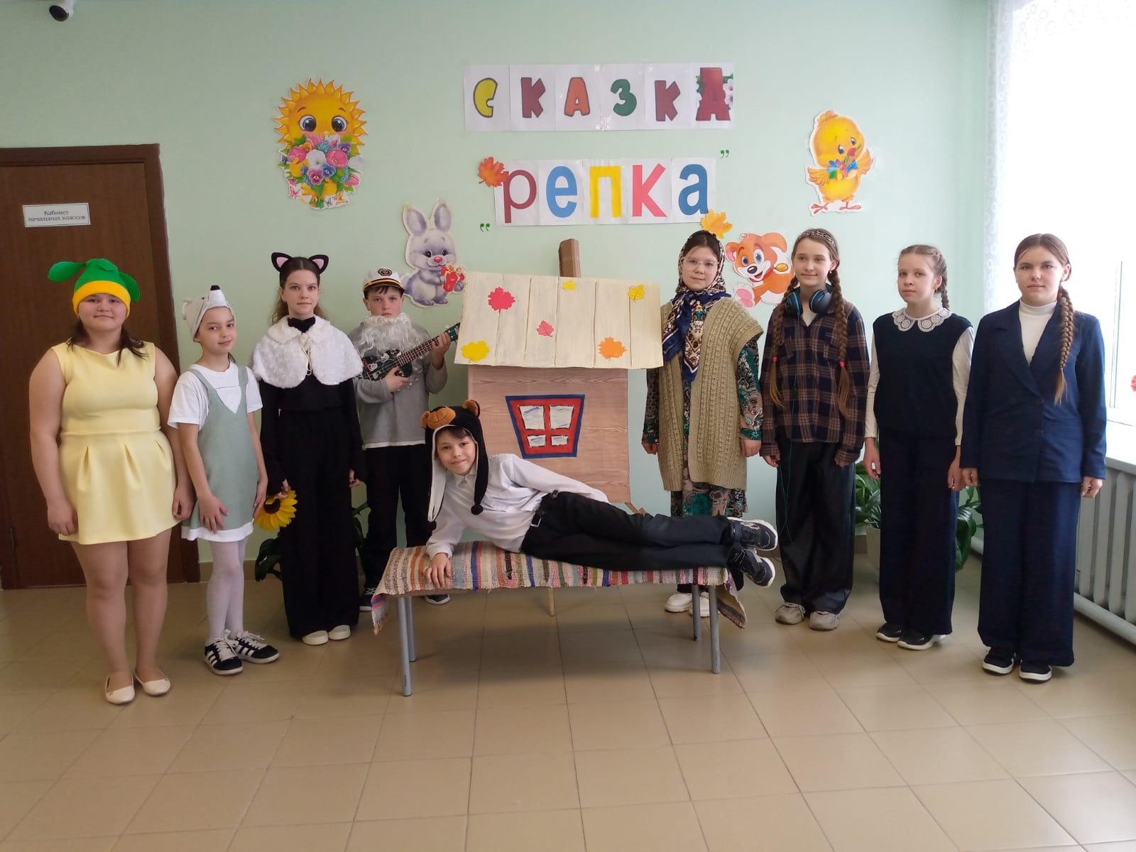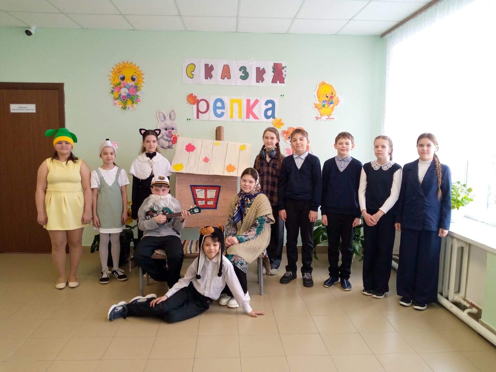 В школе прошла премьера спектакля «Репка» в исполнении театра «Школьные Ступеньки»